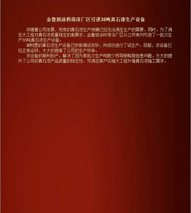 金魯旭菏澤廠區(qū)引進(jìn)35噸真石漆生產(chǎn)設(shè)備